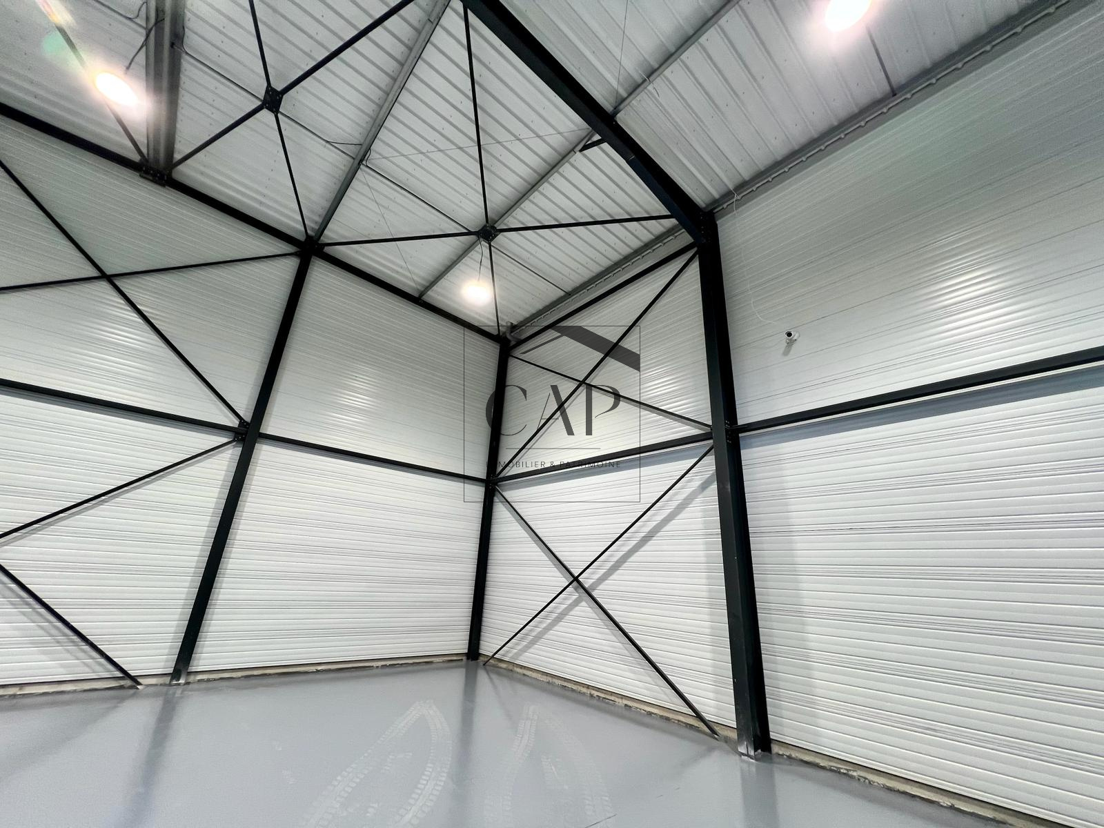 Des matériaux de qualité : dallage au sol en béton armé supporte 4T peinture sol anti-salissure. Ossature métallique, couverture bac acier, bardage « double peau ». Isolation laine coupe-feu 130mm pour les murs pignon et 110mm en toiture.