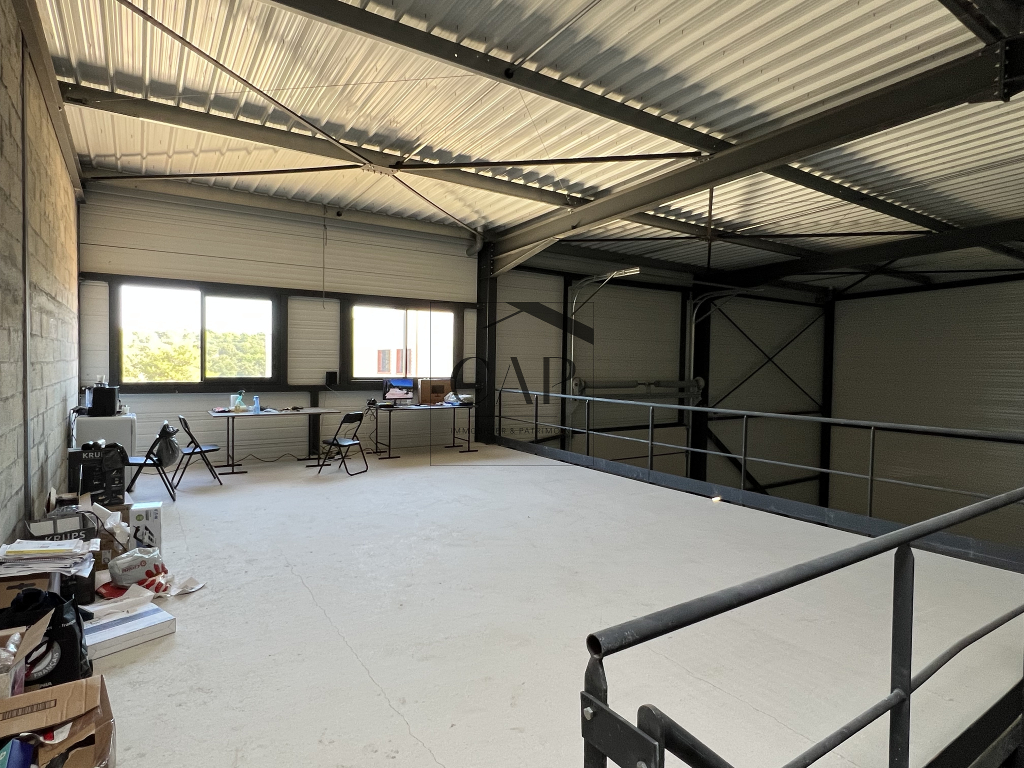 Dans ce local ci, nous vous proposons un grand volume au sol de 179.75 m² (hauteur sous plafond de 8m) avec une entrée piétonne, une grande porte sectionnelle (4 x 4,5 m) ainsi qu'une mezzanine à usage de bureaux de près de 51.25m² avec fenêtres permettant de lier modularité et qualité de vie au travail.