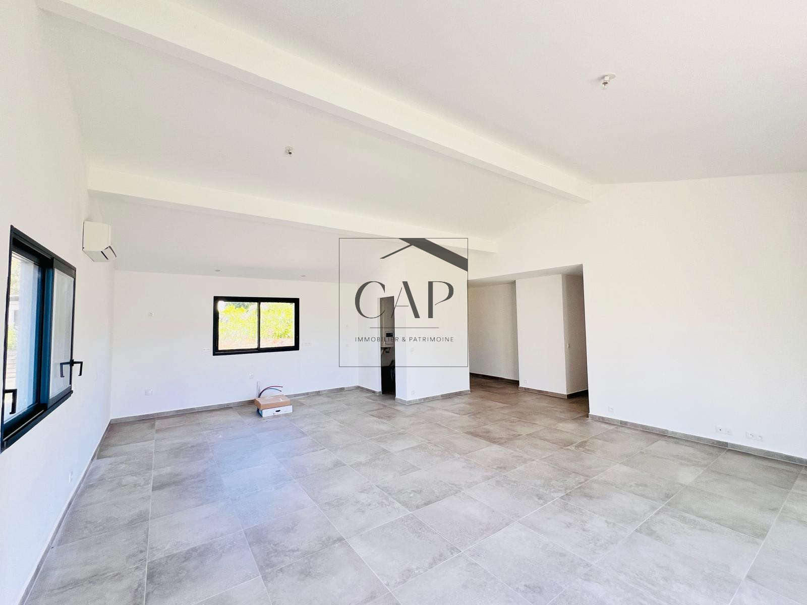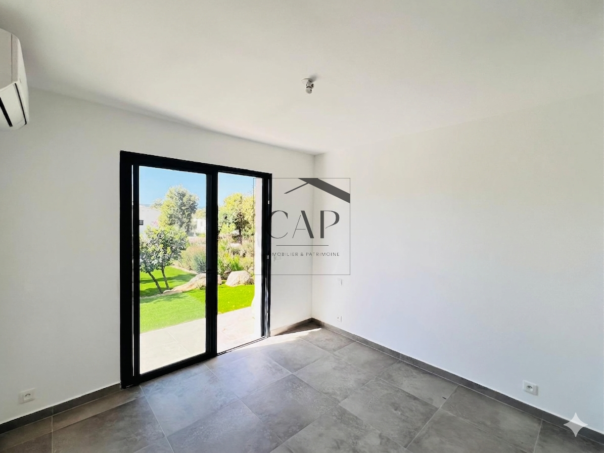 This newly built 106 sqm detached villa is set and elevated residential area. It offers a bright living space with open-plan kitchen, three bedrooms each with en-suite shower rooms, and reversible air conditioning. The property includes a 641 sqm private garden suitable for a pool and a 10 sqm covered terrace. Located just 3 km from beaches and close to local amenities, it is ideal as a holiday home or rental investment.