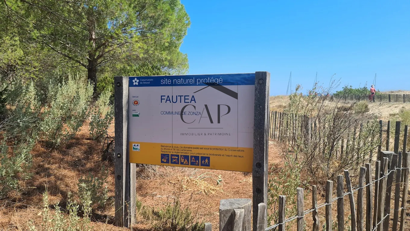 Dans le hameau résidentiel de Cavu, un environnement calme, à proximité de la plages de Fautéa et sa tour Génoiseet des commodités de Sainte-Lucie de Porto-Vecchio (écoles, commerces, santé). Accès rapide à la RT10. Aéroport de Figari à 40 min.