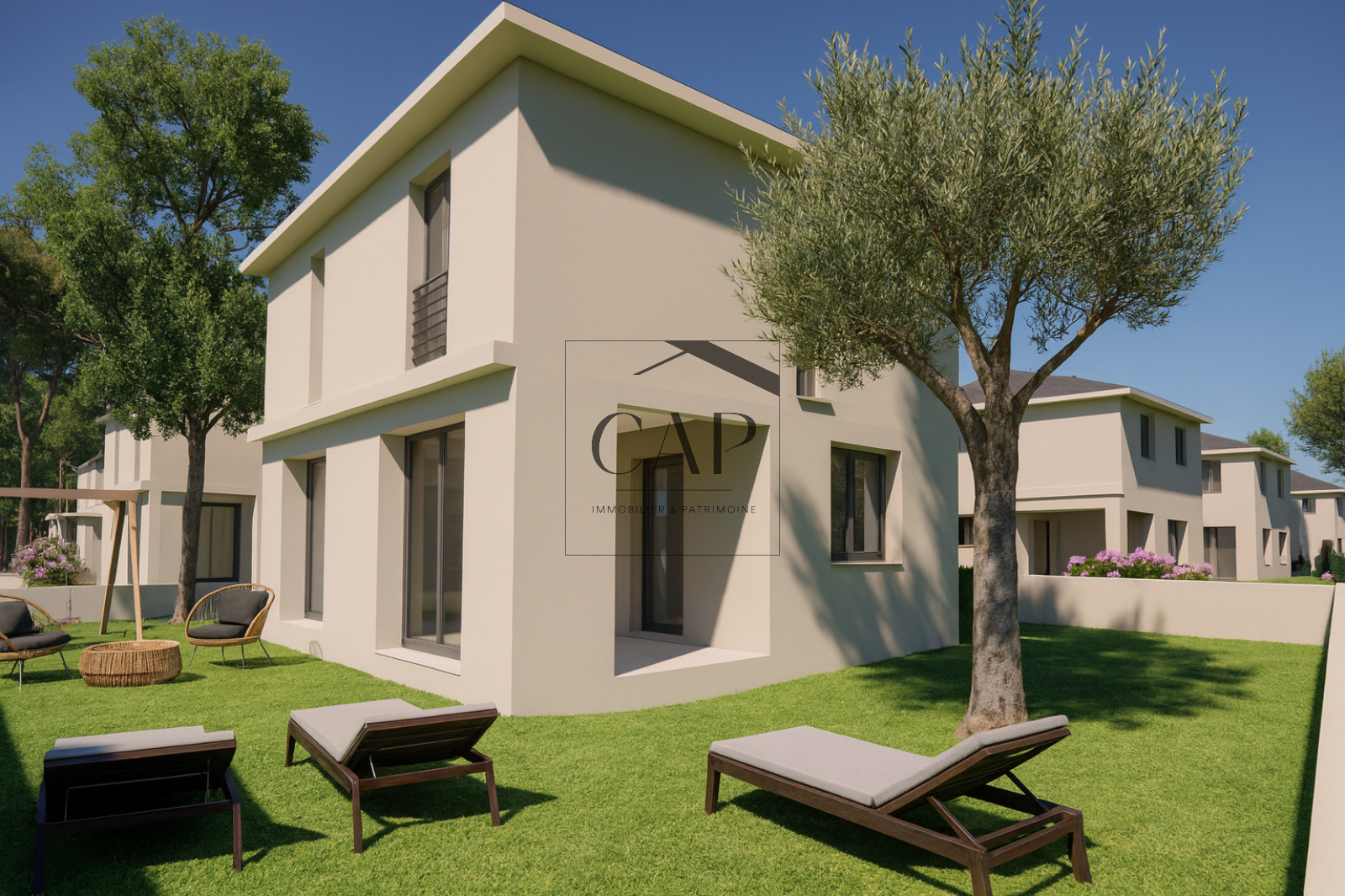 CAP Immobilier & Patrimoine vous propose cette villa neuve T4 de 102 m² habitables avec jardin privatif de près de 450 m², située dans un environnement calme à seulement 400m de la plage de Poggio-Mezzana à pied .
