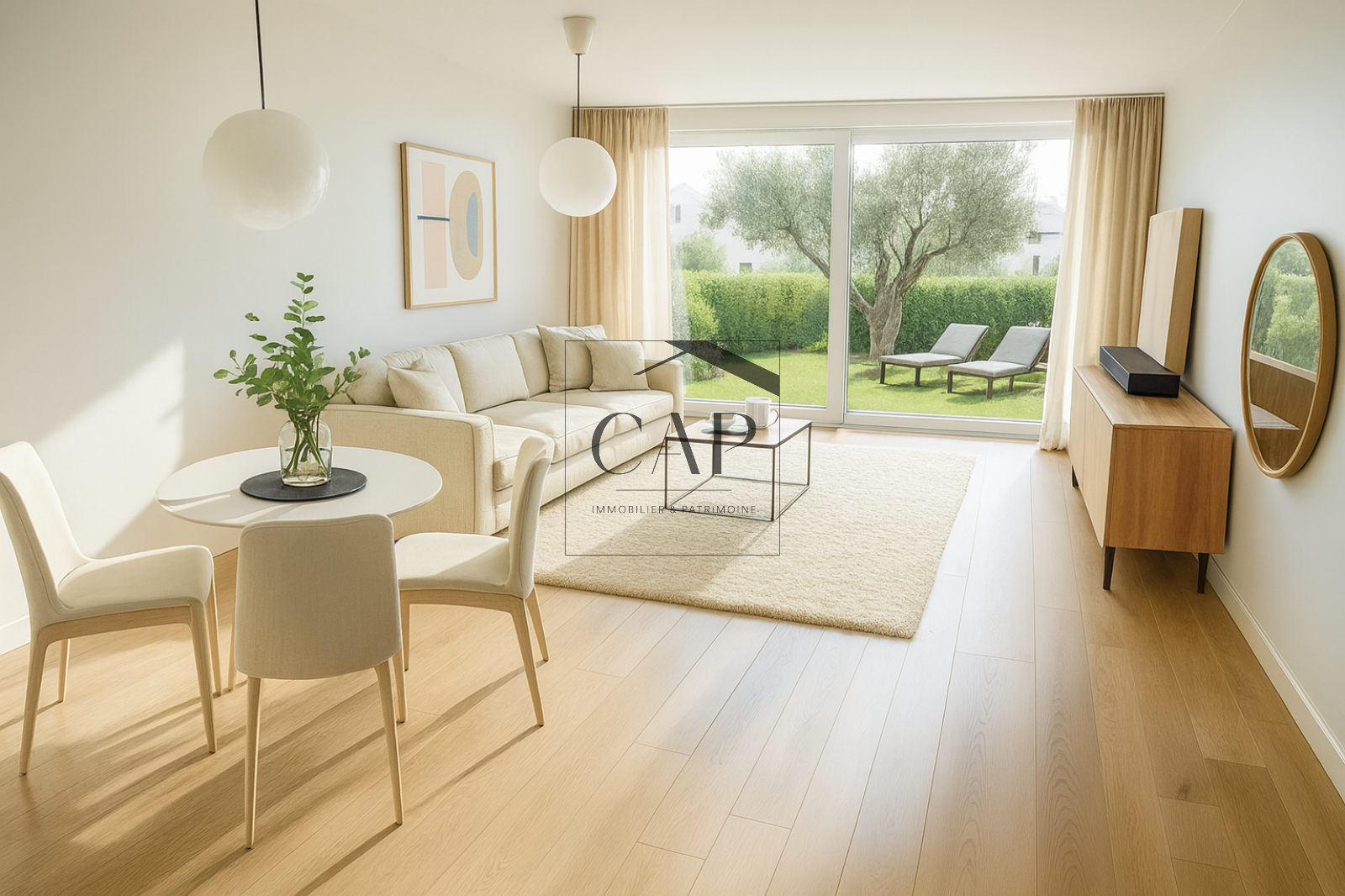 Terrasse couverte et jardin privatif de 450 m² avec un magnifique olivier