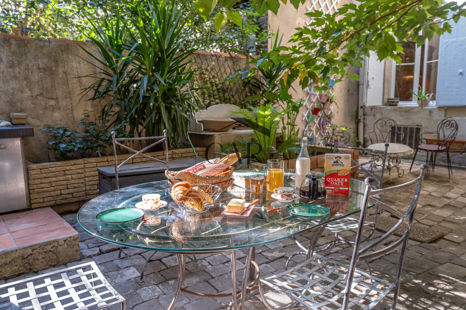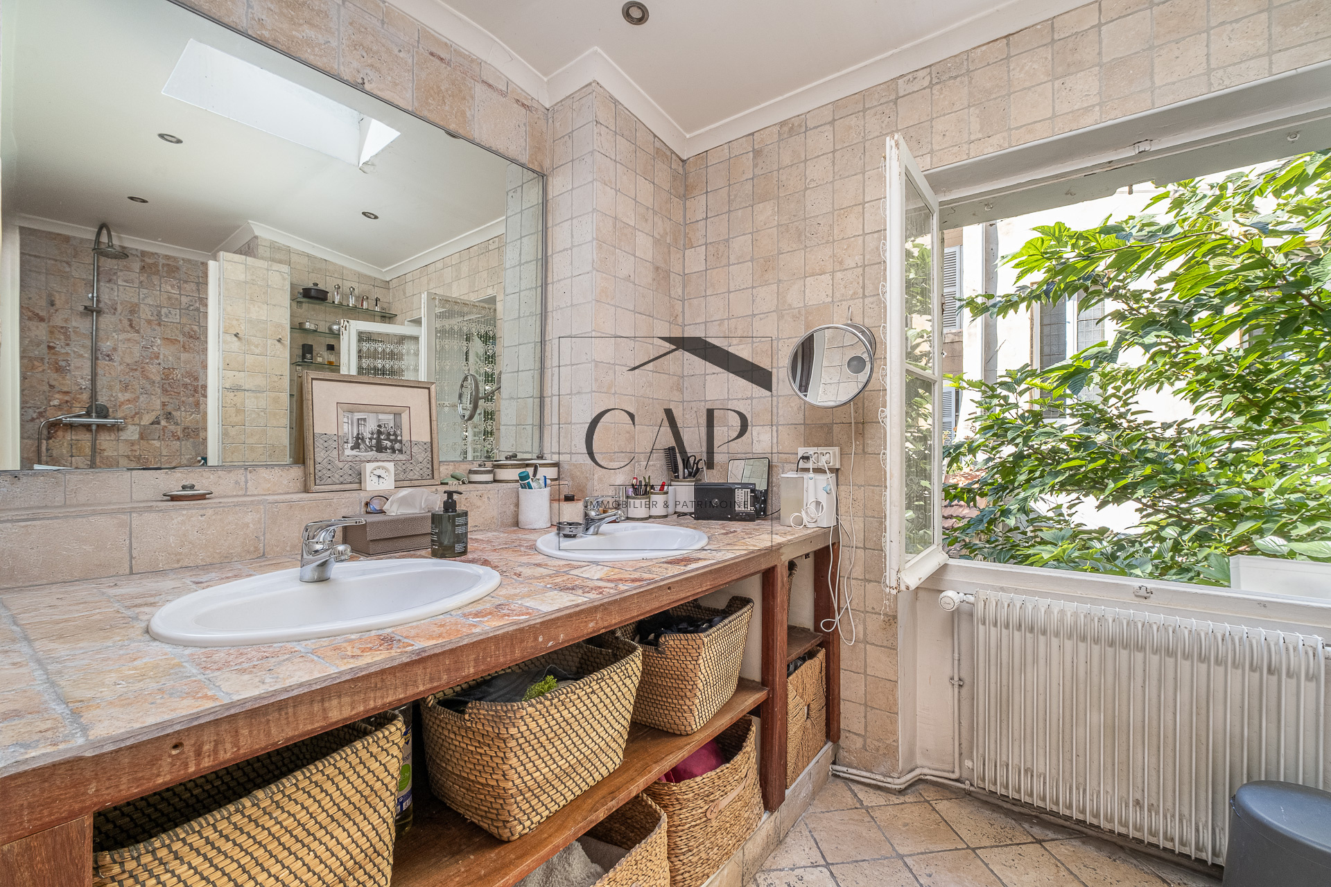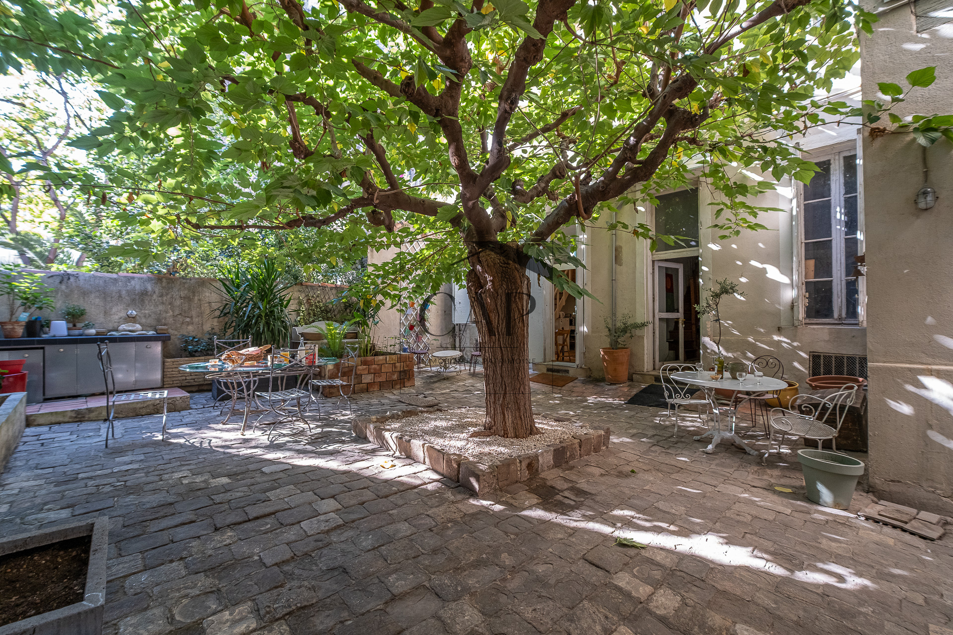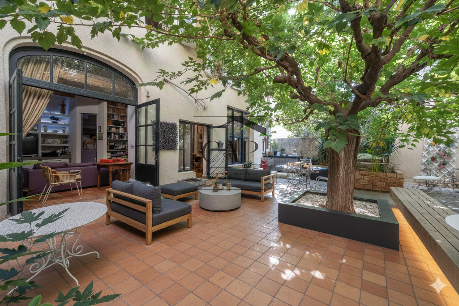 CAP Immobilier & Patrimoine vous propose cet ensemble immobilier rare, organisé autour d’une grande cour de 90 m² offrant une atmosphère paisible, à l’abri de la ville. Accessible après un passage couvert et un porche en bois, cet espace rappelle une petite place de village et dessert trois unités : une maison, un appartement et un atelier.