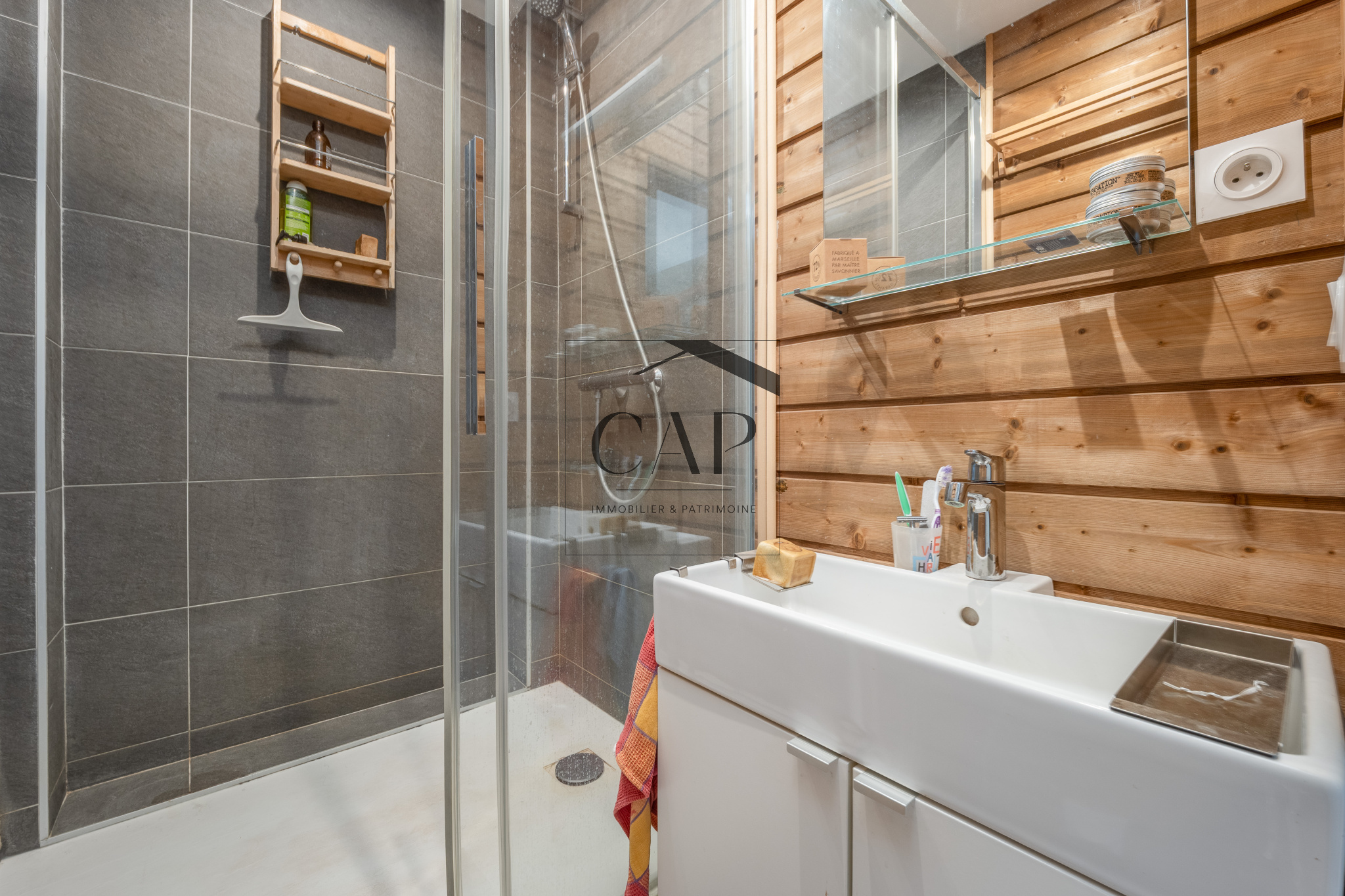 MARSEILLE 8EME LE ROUET : CAP Immobilier & Patrimoine vous propose en exclusivité, au dernier étage d’un immeuble marseillais de 3 niveaux, un appartement T2 de 48 m² entièrement rénové avec une conception écologique.