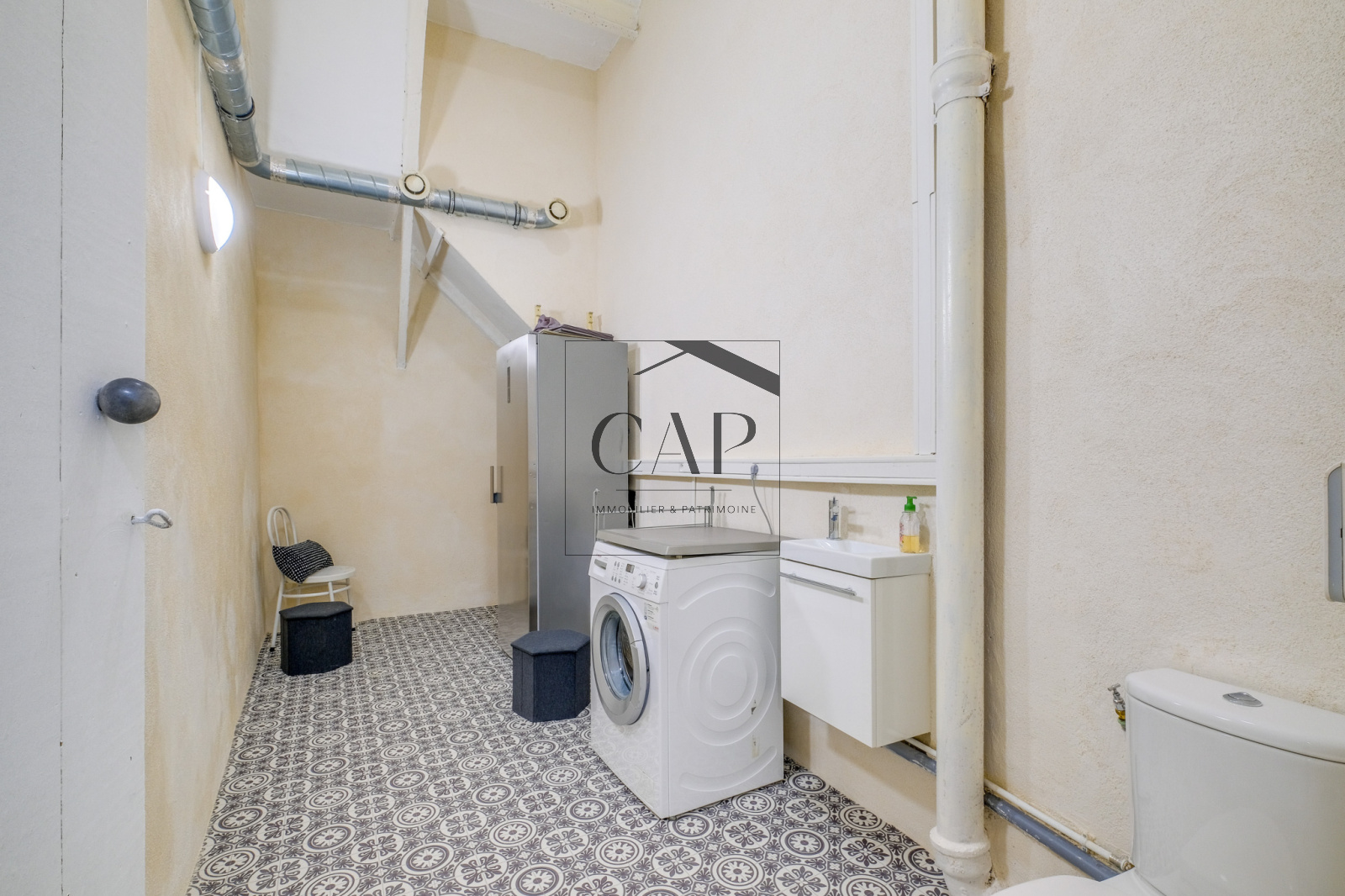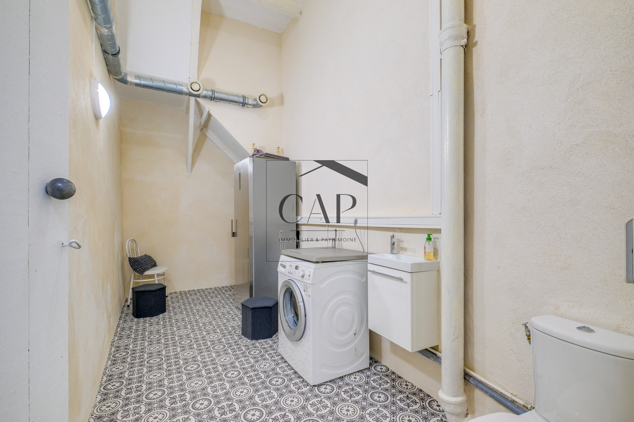 Au rez-de-chaussée de l’immeuble : une grande buanderie avec WC permet de bénéficier d’un espace supplémentaire.