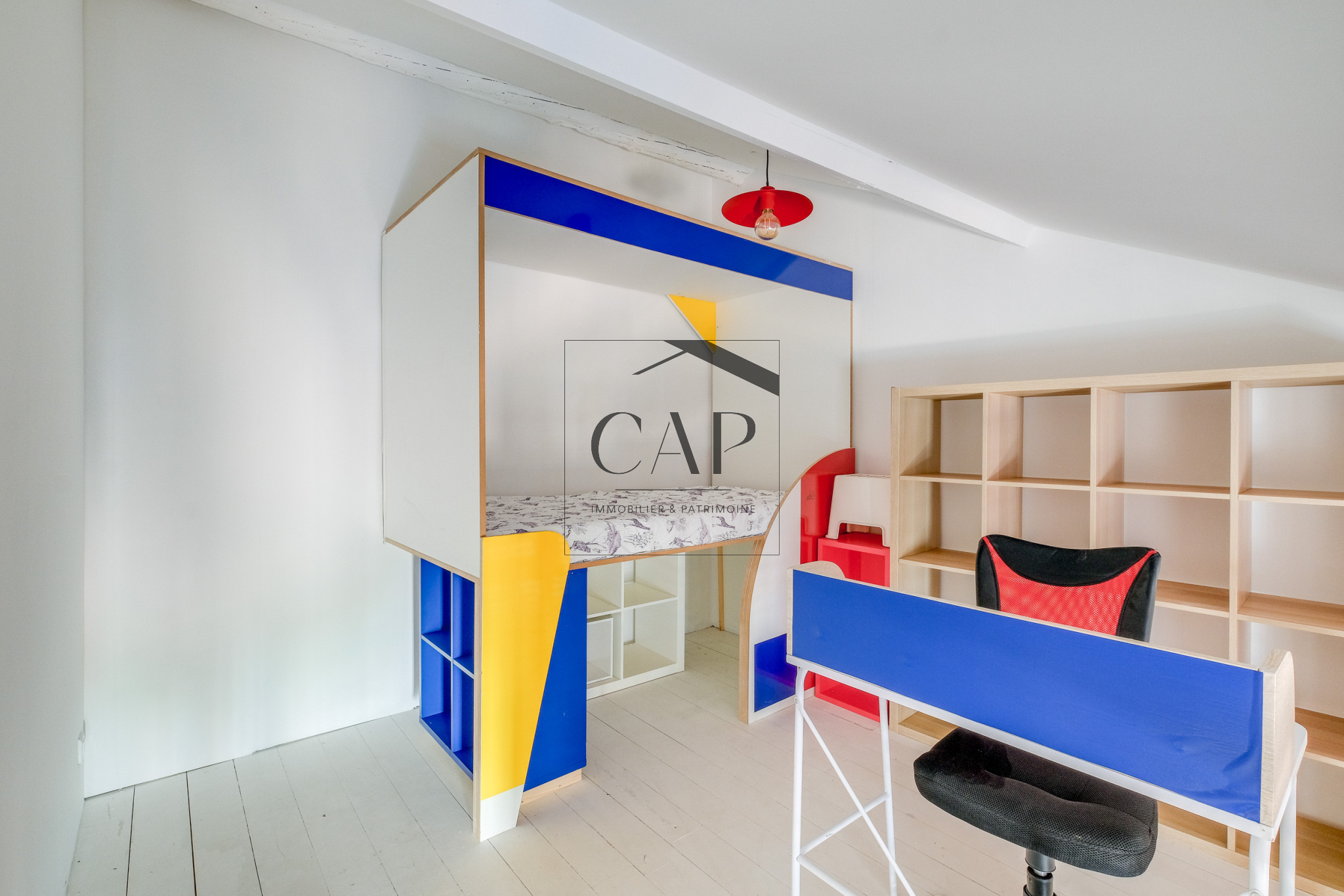 -Et à l’étage supérieur : deux chambres climatisées dont une sur double niveau, et un espace bureau adjacent idéal pour télétravailler ou pour les moments de créativité.