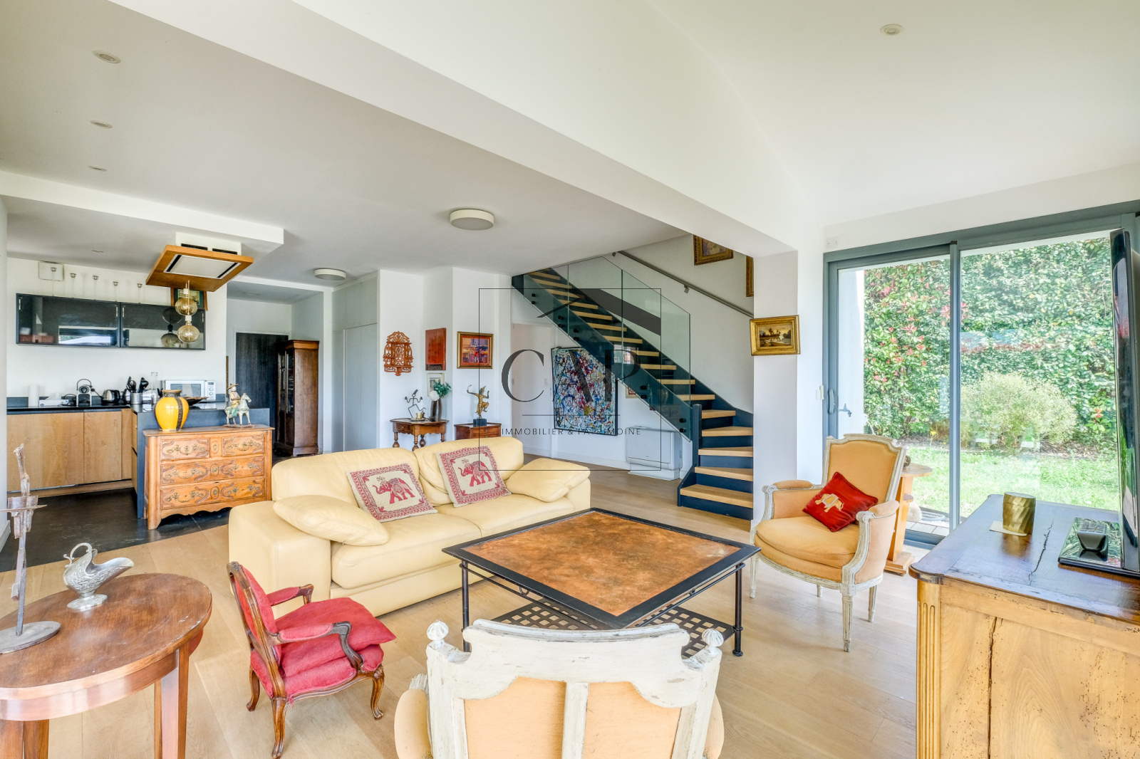 - au rez-de-chaussée : vous découvrirez un espace de vie spacieux et lumineux de 50 m² avec son séjour- salle à manger et sa cuisine ouverte toute équipée ; une grande chambre avec sa salle de bains privative, une buanderie, et des wc