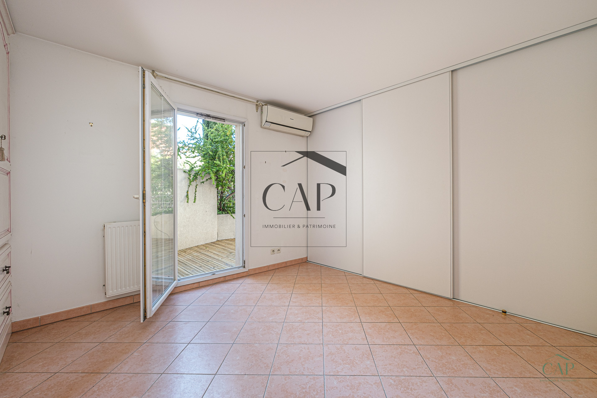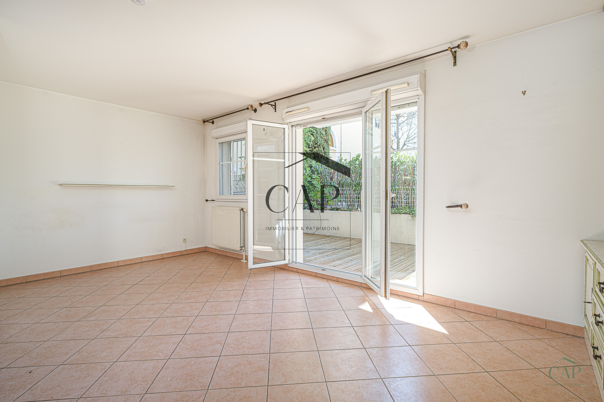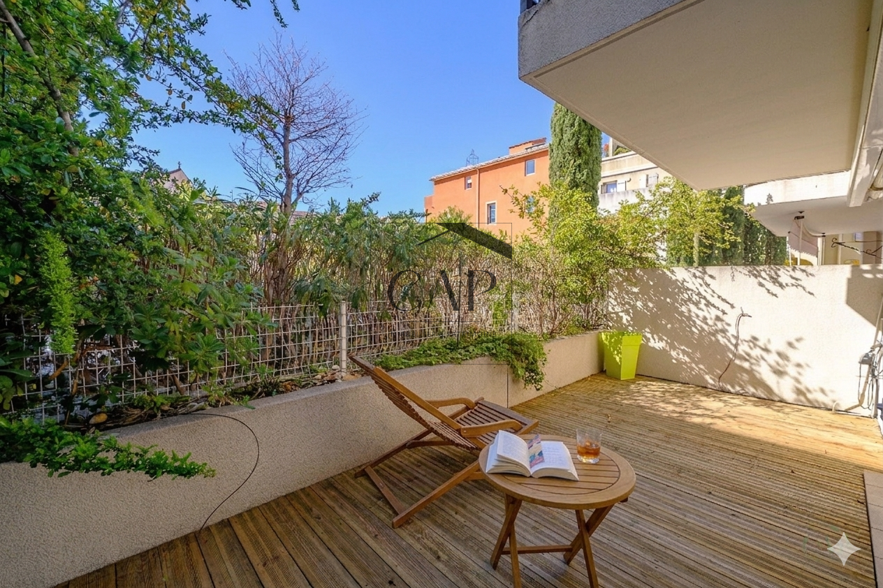 À l’extérieur, une terrasse privative d’environ 25 m², exposée plein sud et baignée de soleil en toute saison, est accessible depuis le séjour et la chambre. Un véritable prolongement des espaces de vie, au calme, donnant sur un patio intérieur sécurisé.