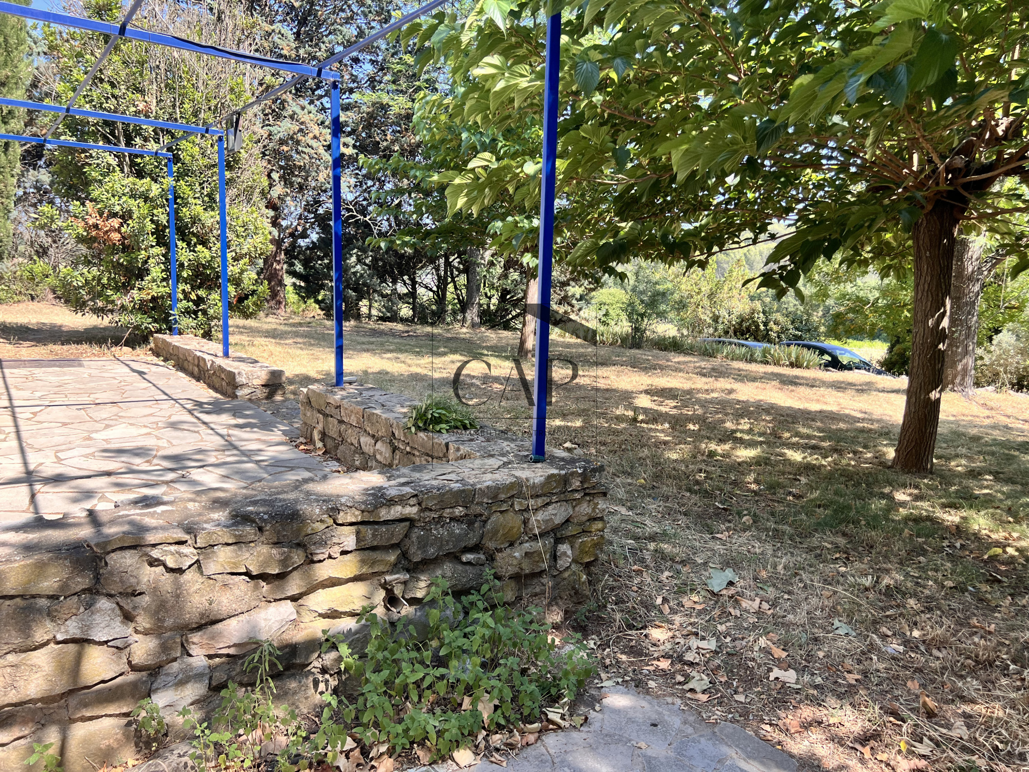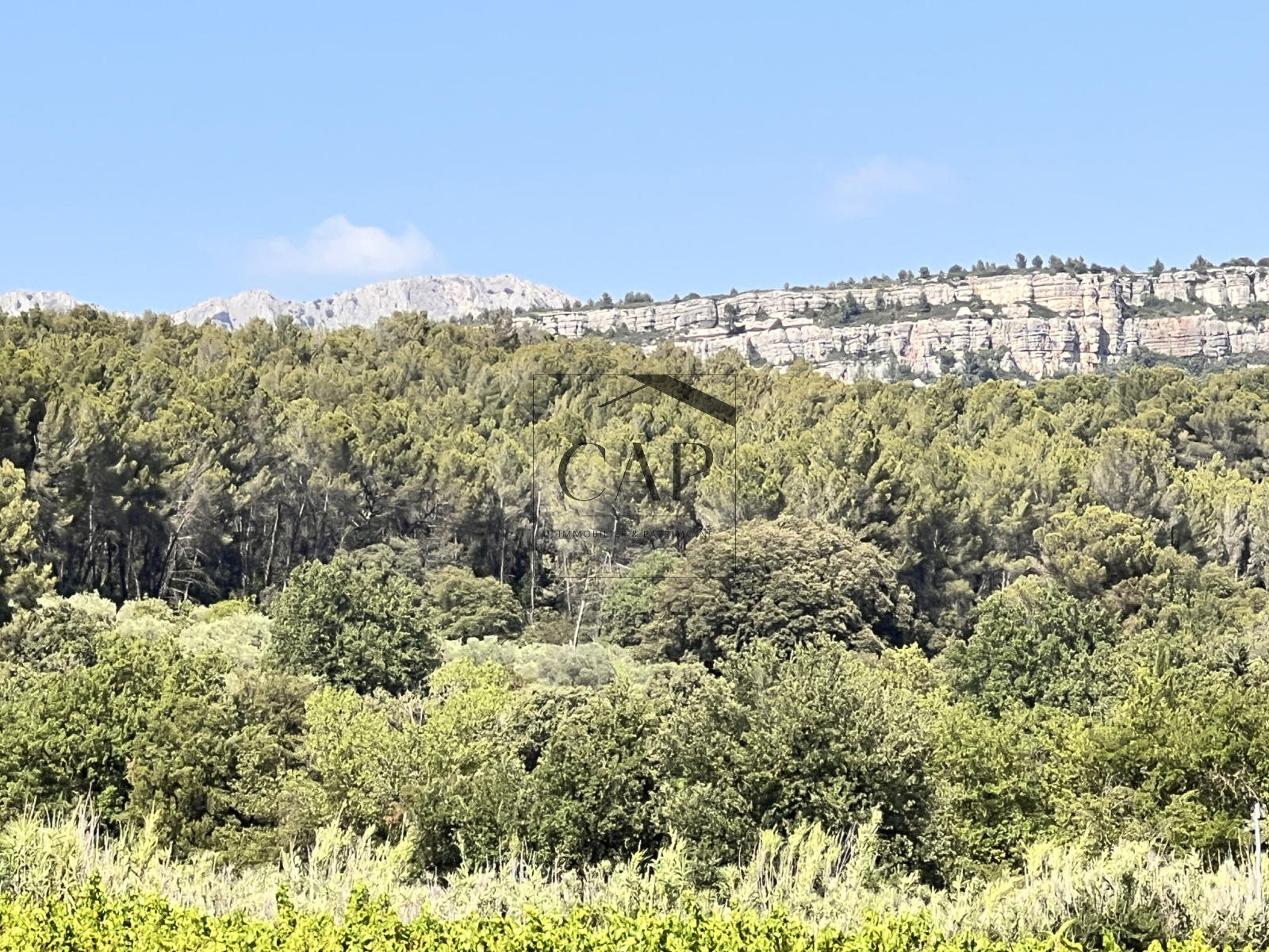 Parcelle paysagée et arborée avec restanques, sans vis-à-vis, entourée de vignes.