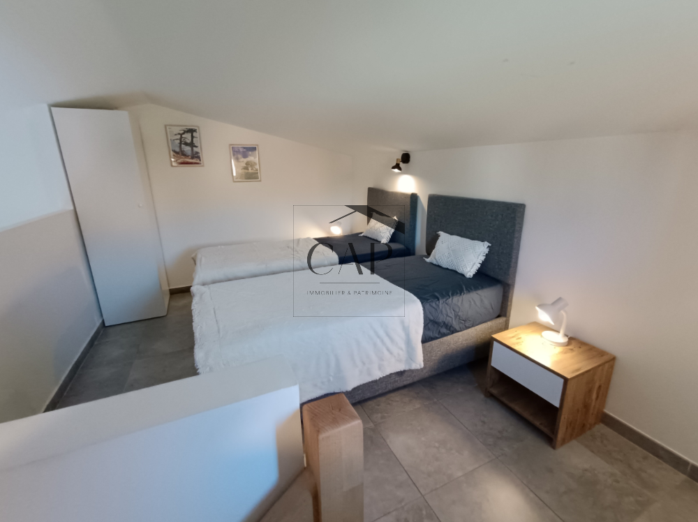 Fully furnished and equipped 48 sqm one-bedroom apartment with mezzanine, located in a high-end residence with heated swimming pool in Lecci, near Porto-Vecchio. Recently renovated, it offers a bright living area with open kitchen, opening onto an 11 sqm terrace and a private 24 sqm garden. One ground-floor bedroom, a 13 sqm mezzanine bedroom, modern shower room, air conditioning, and private parking. Quiet, green surroundings close to Saint-Cyprien and Cala Rossa beaches.