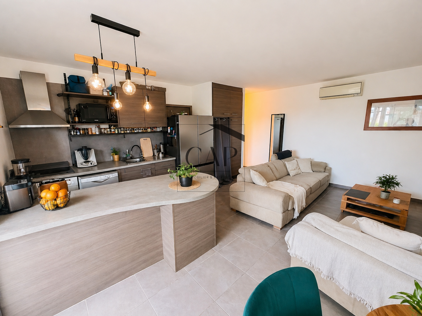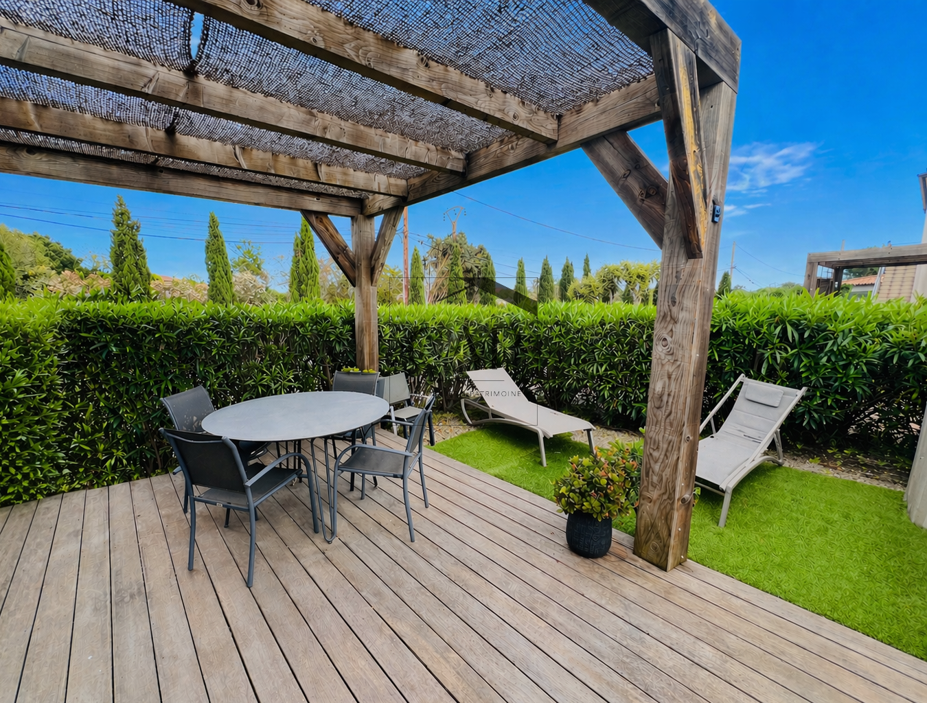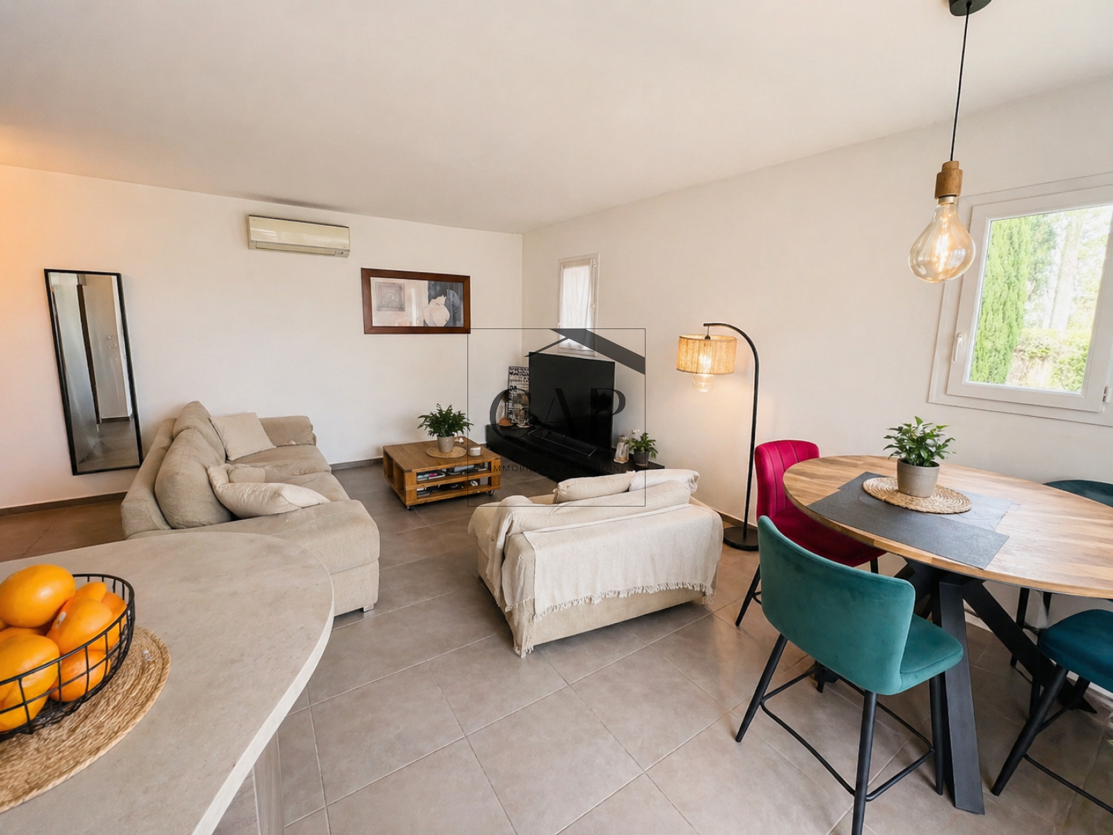 Vendu meublé et équipé, avec climatisation réversible dans toutes les pièces et volets électriques.